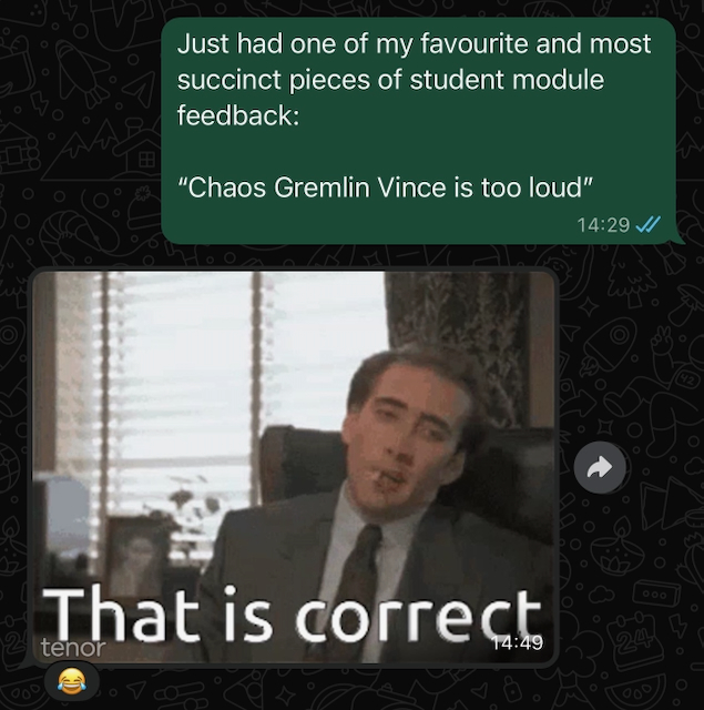 I sent this to some of my friends and they pretty much all agreed with you (and many regretted not thinking of “chaos gremlin” themselves).
